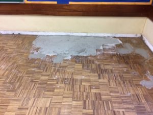 Procedemos à remoção das placas do tecto que estavam em cortiça, que se encontravam podres e foram substituídas por tecto em pladur, bem como, à reparação do chão que foi substituído por soalho flutuante. Foram ainda pintadas as salas de aula e foram colocadas novas tijoleiras no hall, bem como, novos rodapés.