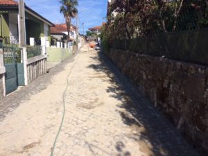Requalificação da Rua Centro do Aldão, com colocação de sarjetas para recolha de águas pluviais e regularização do pavimento em cubo.